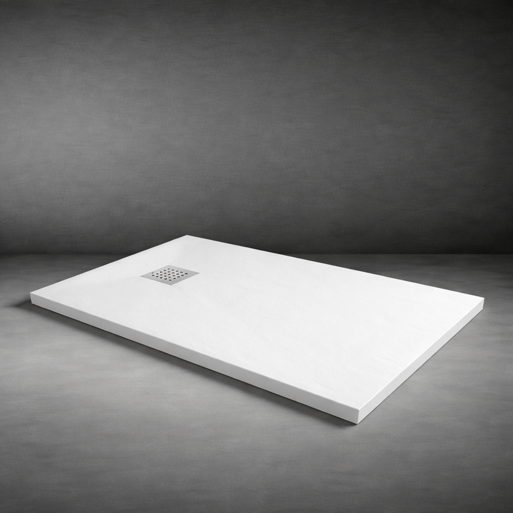 Plato de ducha de textura pizarra con certificado antideslizamiento.